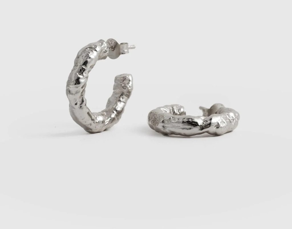 In the soft morning light of the UK spring, wearing the Molten Hoop Earrings – Silver gives a fresh and clean vibe while maintaining a modern edge, making them my early spring favorite.
